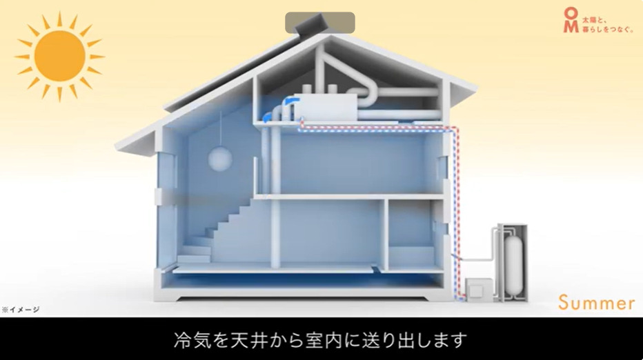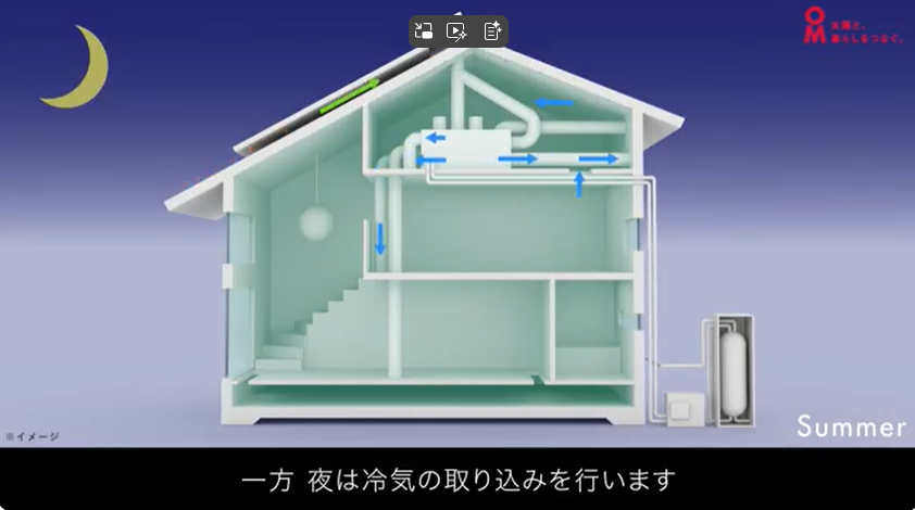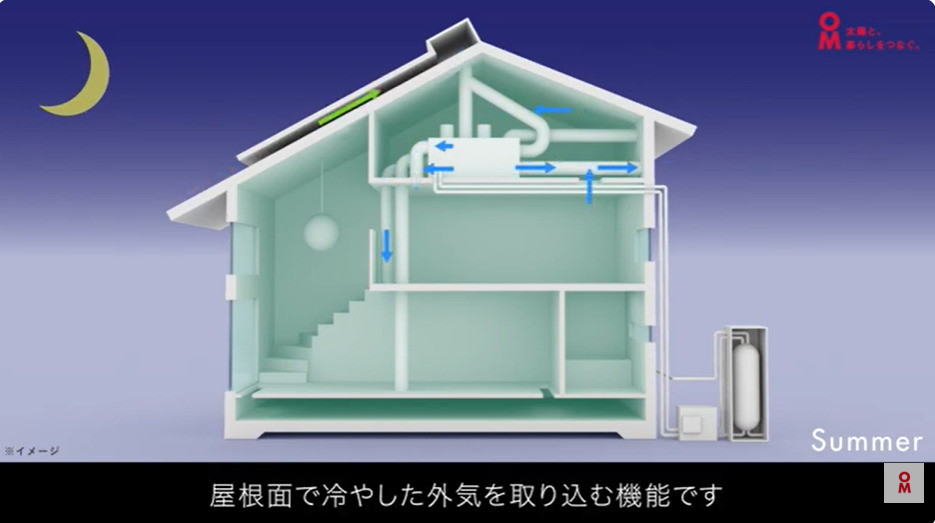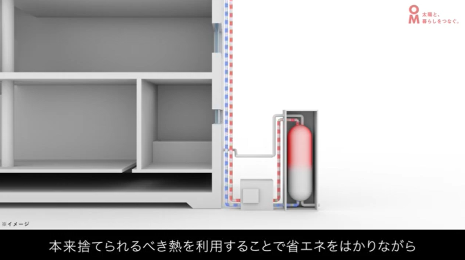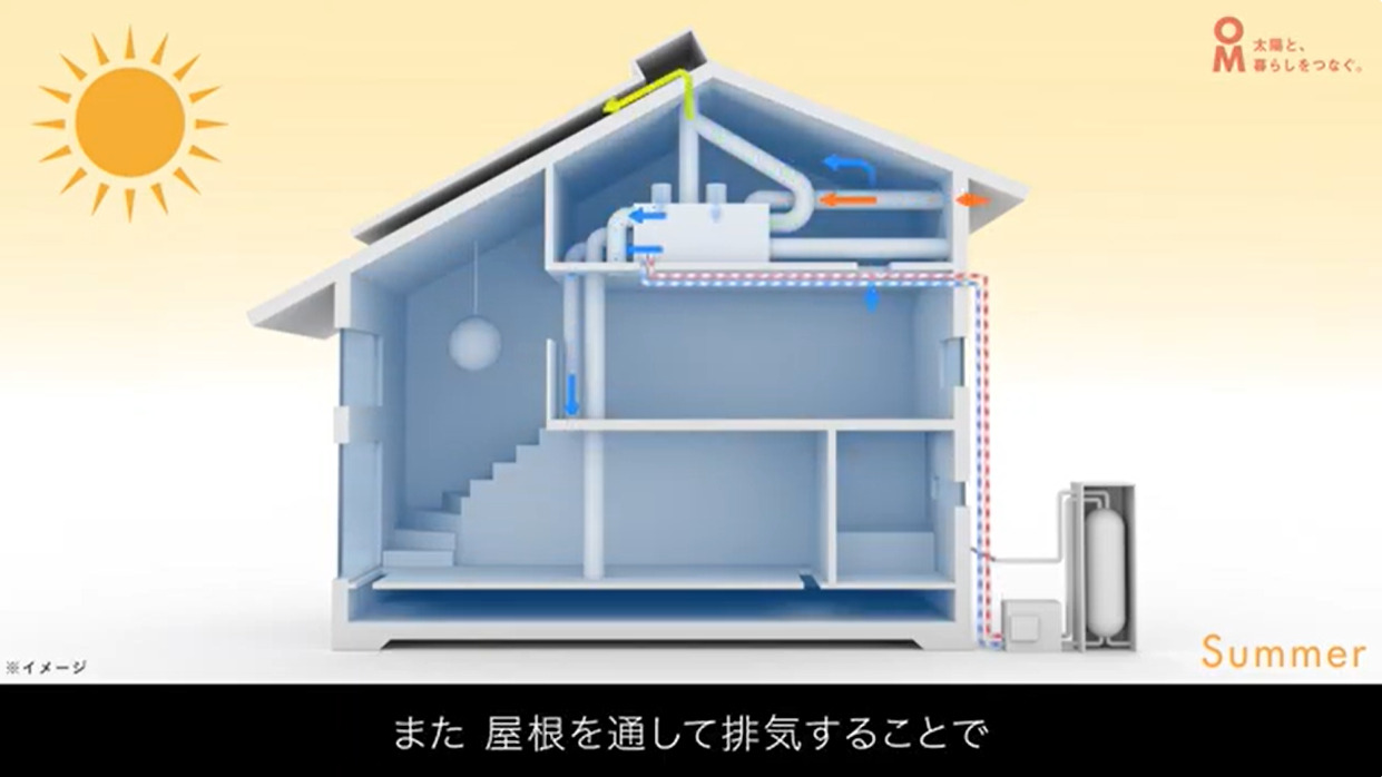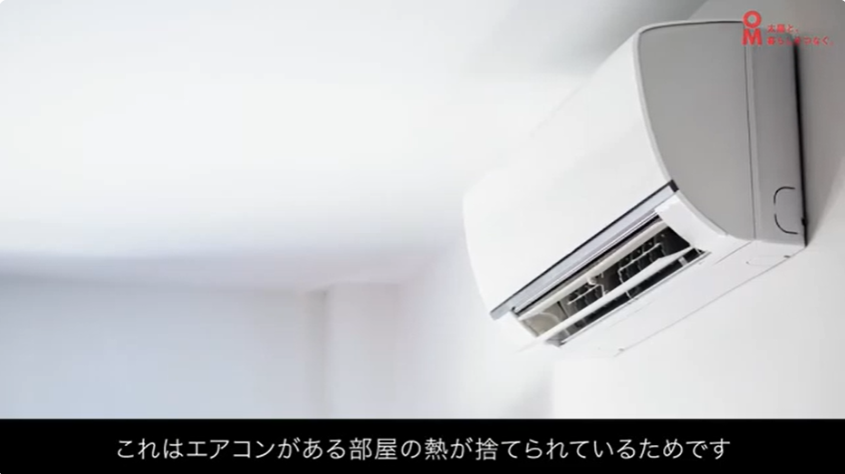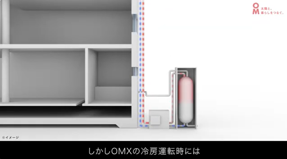 OMXでは全館空調を採用しており、夏場に冷房を入れたとき、ヒートポンプにより暑い空気を外に排出します。
