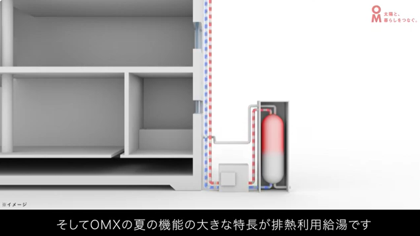 OMXとは、太陽熱と最新のエアコンシステムによる全館空調、そして給湯システムにより、24時間365日快適な環境を叶える住まいのかたちです。