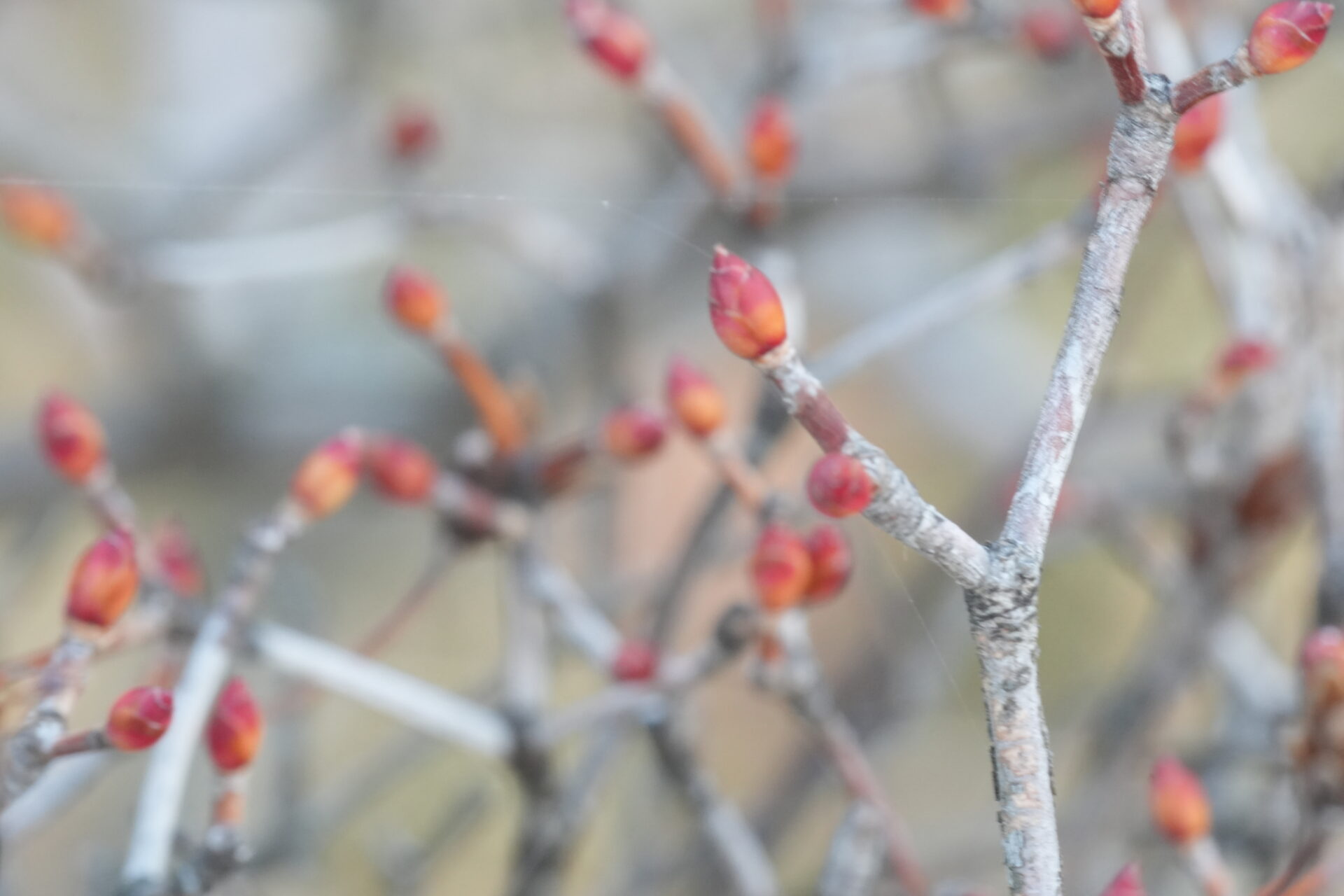 赤い頭のとんがった冬芽です。