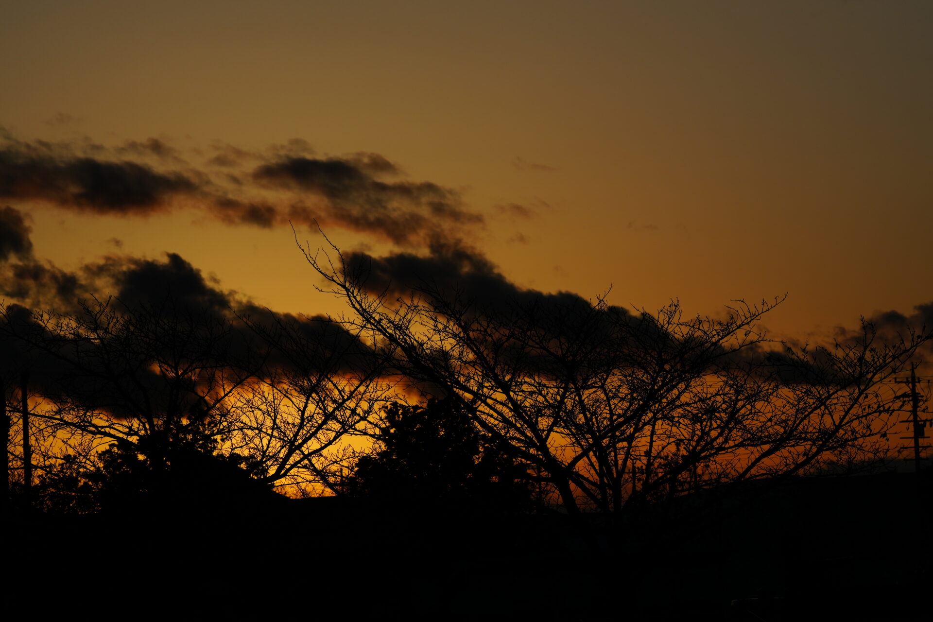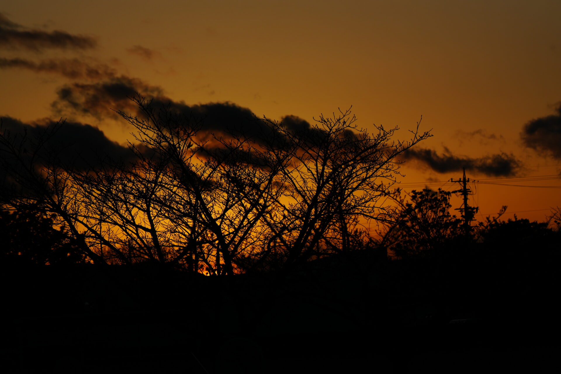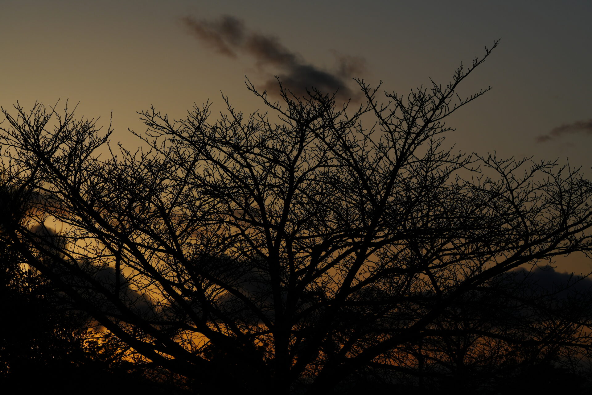 夕日をバックに樹形を見るのも