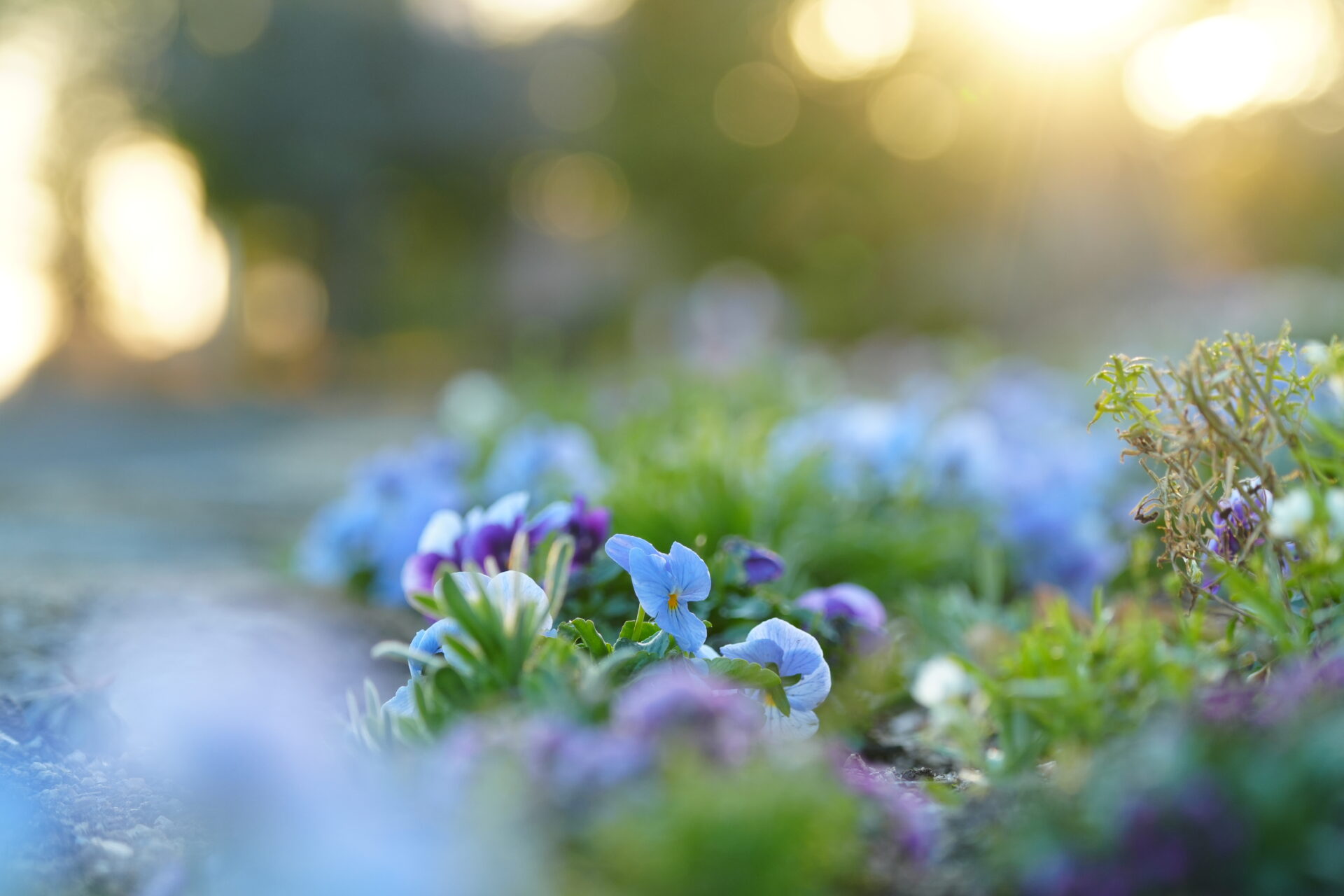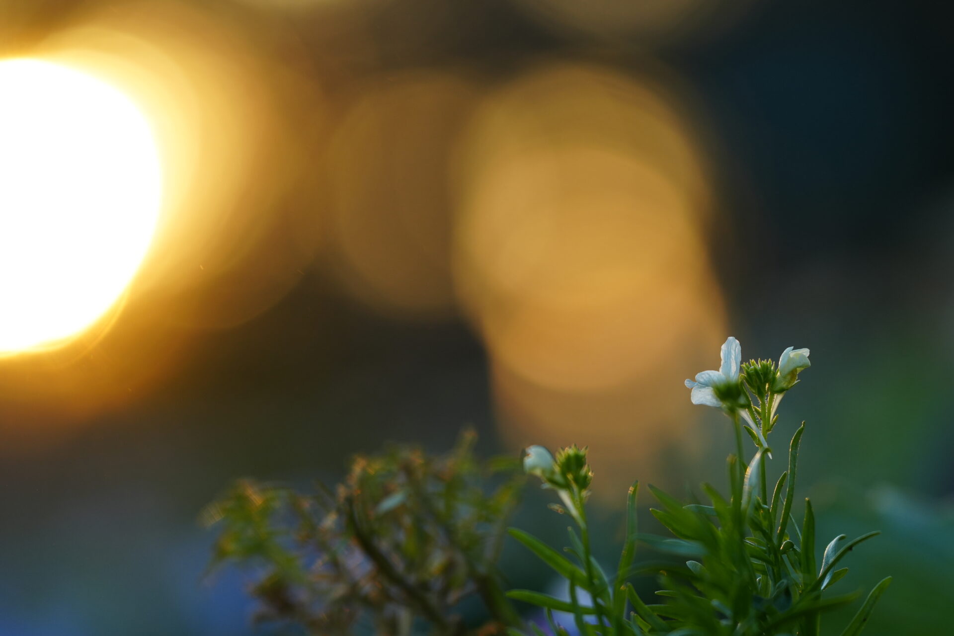 夕暮れの光をバックに花たちの写真を撮ってみました。