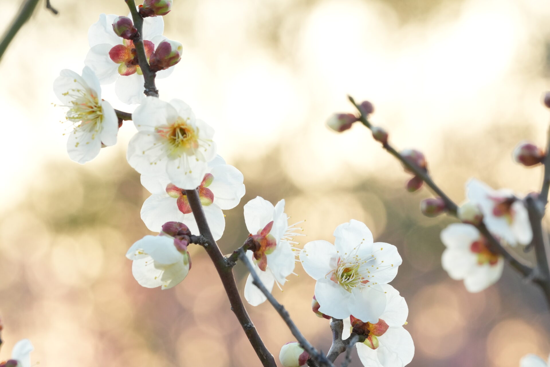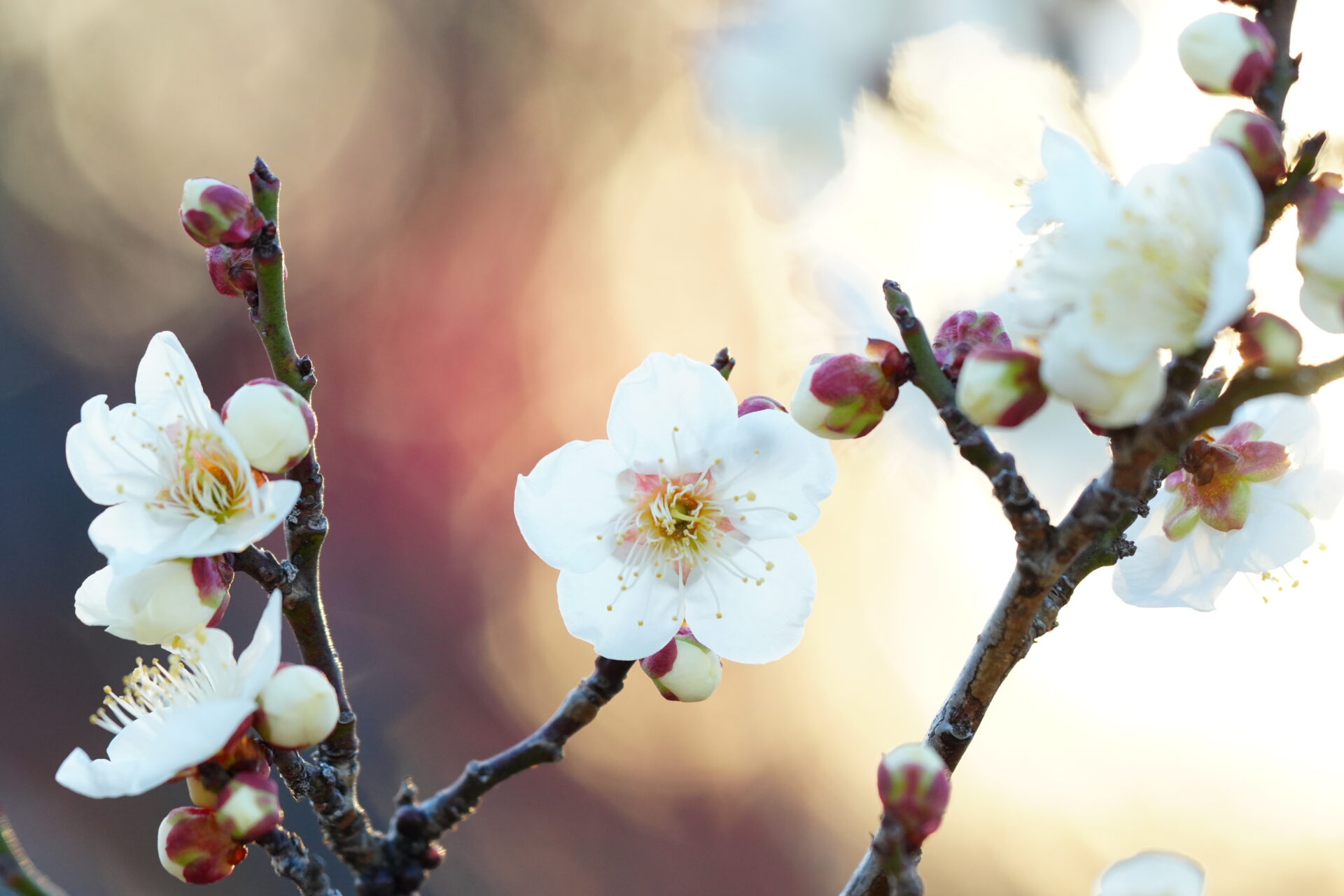 夕方、太陽が沈む光を利用してウメを撮ってみました。