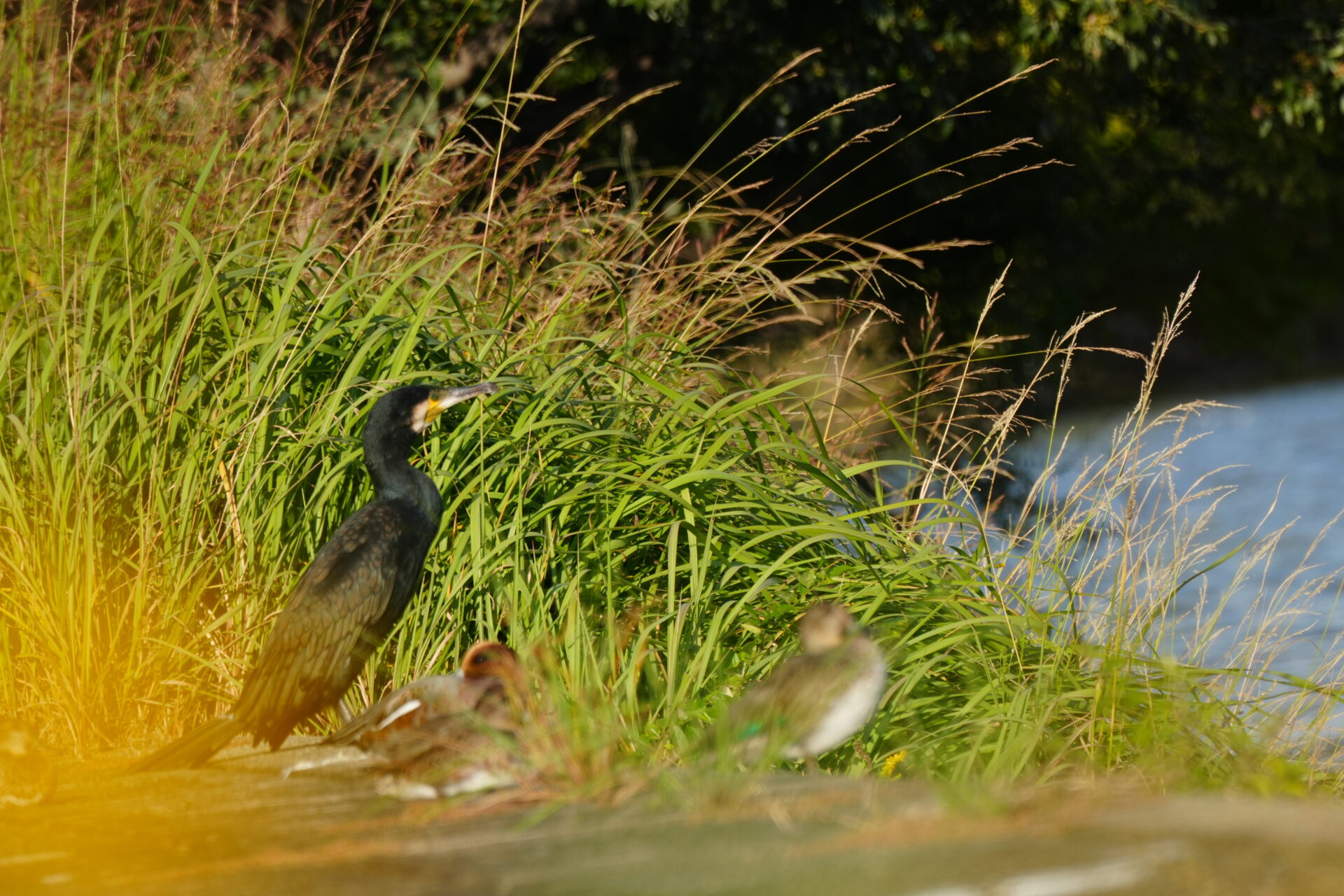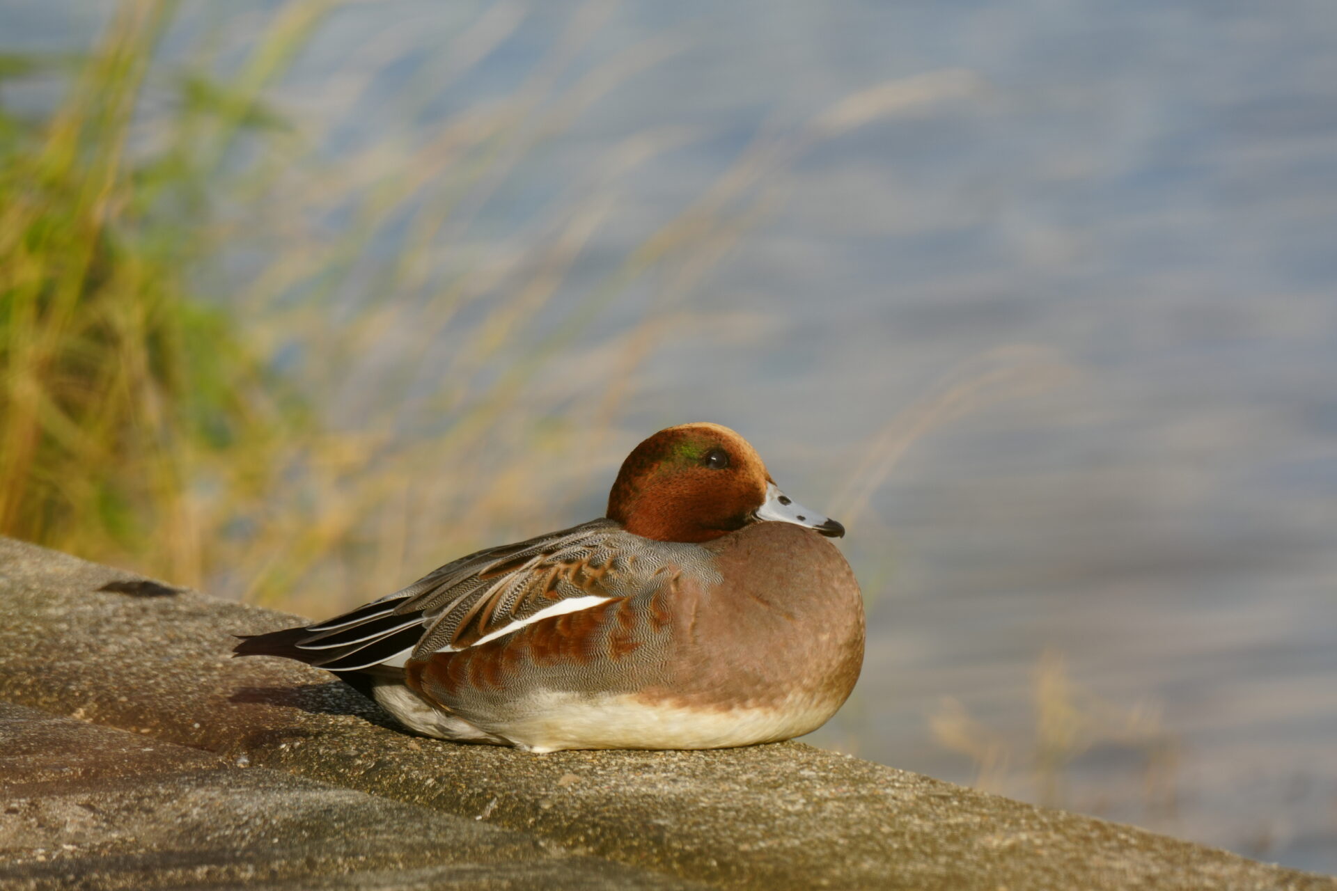 冬鳥のヒドリガモ、オナガガモ、コガモの姿が見られました。