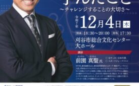 前園真聖氏の講演会が12月14日(木) 18:30~20:00刈谷市総合文化センター大ホールで開催されます。 演題は「サッカーから学んだこと~チャレンジする...